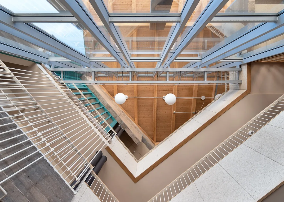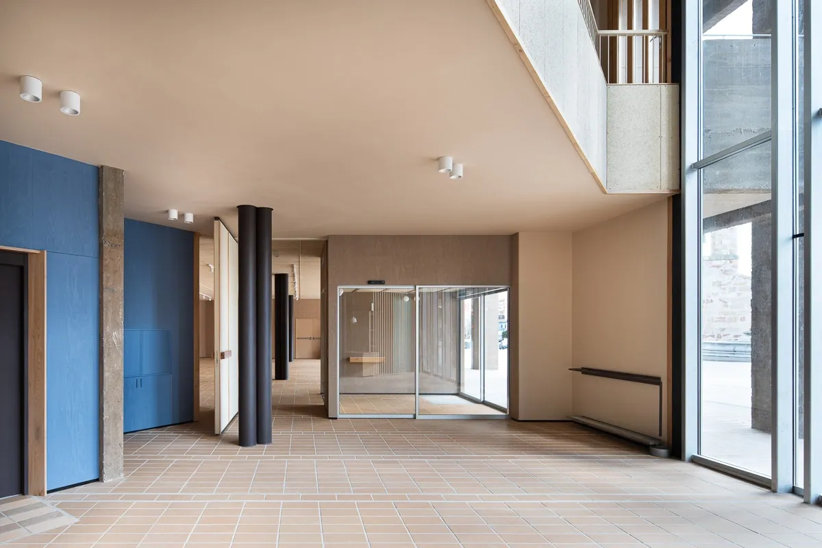 La renovación incluyó la reorganización completa de los usos, la mejora de la accesibilidad y la implementación de nuevas instalaciones para garantizar eficiencia, confort acústico y un comportamiento energético más sostenible. Las dobles alturas, los grandes ventanales y la amplitud de los vestíbulos convierten el edificio en un lugar que invita a quedarse, conversar y participar.
